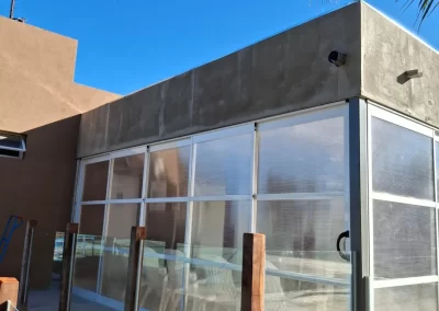 Adaptabilidad Técnica: Una de las mayores ventajas de la Línea Herrero es su capacidad para incorporar una amplia gama de contra vidrios. Esta flexibilidad nos permitió instalar sin problemas los paneles de policarbonato, demostrando que la línea puede adaptarse a diferentes requerimientos de seguridad y materiales, siempre buscando la mejor solución para el cliente.